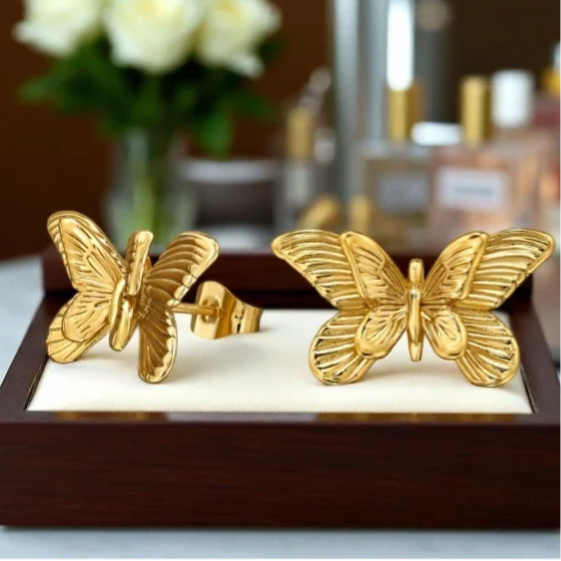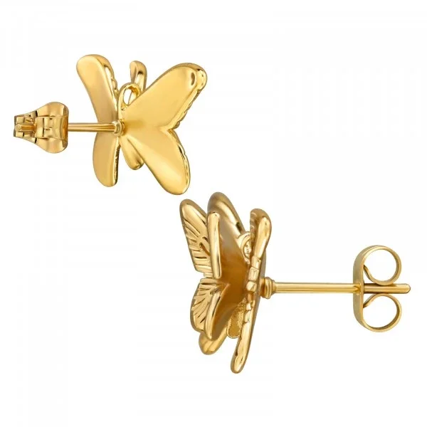 Verrijk je collectie met deze Double Winged Butterfly oorbellen van roestvrij staal in goudkleur uit onze staal- en titaniumlijn. Ze zijn aantrekkelijk, duurzaam en gemaakt van chirurgisch roestvrij staal met een gladde IP/PVD vergulde afwerking. Dit paar weegt 2,50 gram