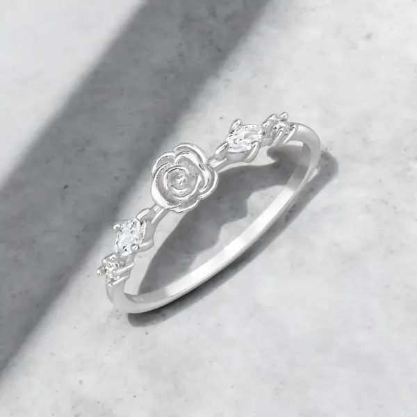 Deze verleidelijke rozenbloemring met zirkonia komt uit de categorie Zilveren Ringen.