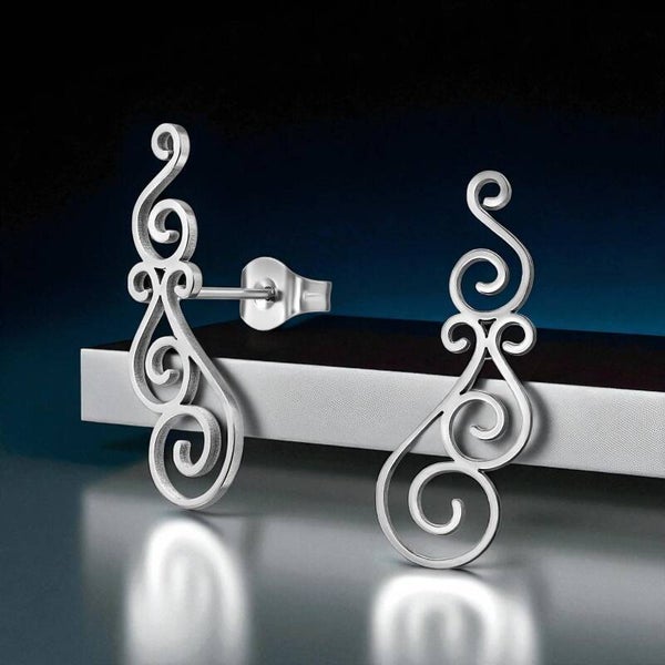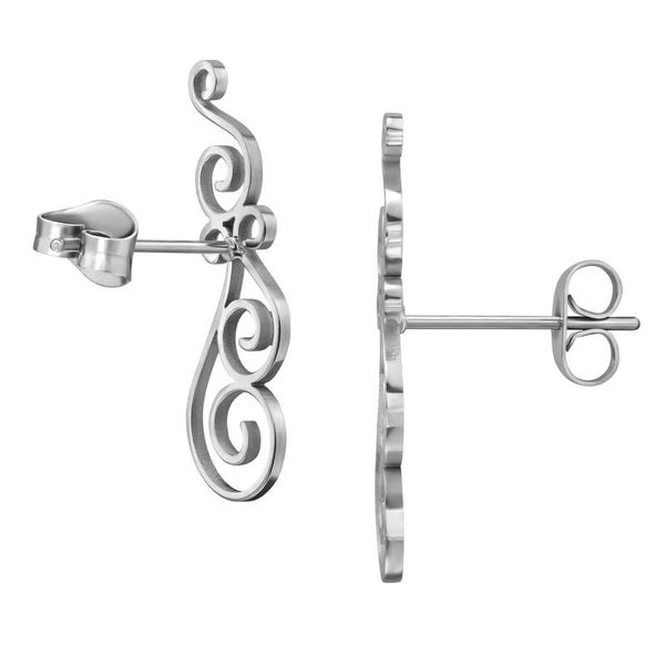 Verrijk je collectie met deze filigraan Swirl oorbellen van roestvrij staal in goud en zilver kleur uit de staal- en titaniumlijn – dromerig, duurzaam en gemaakt van chirurgisch roestvrij staal met een gladde IP/PVD vergulde afwerking. Dit paar weegt in totaal 2,50 en is 8 mm x 23,5 mm groot.