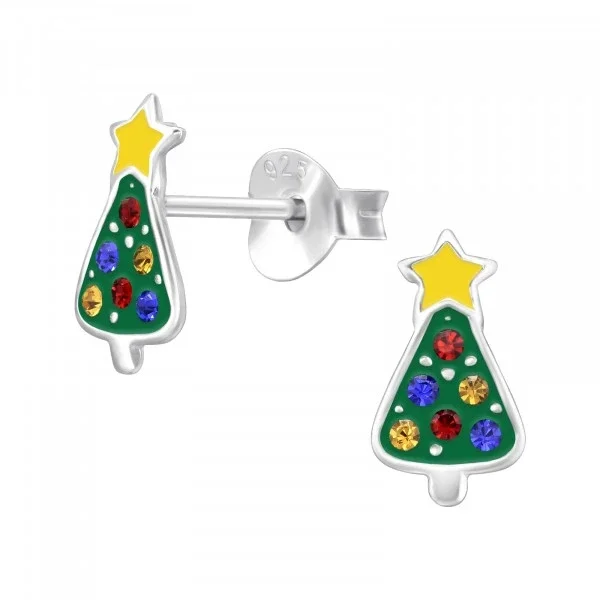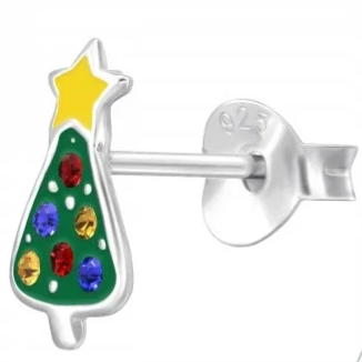 Voeg wat sprankeling toe aan je sieradendoos met deze superleuke kerstboom oorbellen met kristal en epoxy uit mijn kindercollectie met zilveren sieraden! Gemaakt van hoogwaardig 925 sterlingzilver met een glanzende E-coating. Dit paar weegt 0,4 g zilver en is 5,3 mm x 9,5 mm groot.