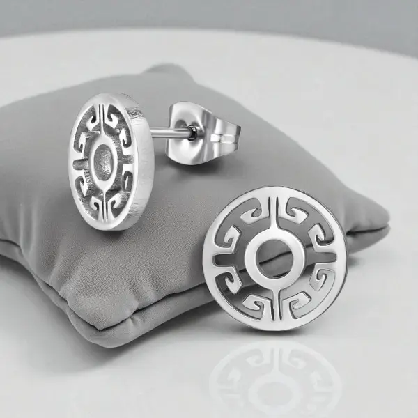Verrijk je collectie met deze Griekse cirkelvormige oorbellen van roestvrij staal met gouden details uit de staal- en titaniumlijn. Ze zijn delicaat, duurzaam en gemaakt van chirurgisch roestvrij staal met een gladde IP/PVD vergulde afwerking. Dit paar weegt 2,00 en is 10 mm x 10 mm groot.