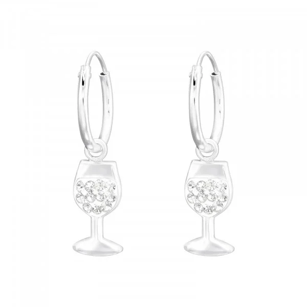 Dit aantrekkelijke paar oorringen met hangend wijnglas met kristal is een leuke eyecatcher. Gemaakt van hoogwaardig 925 sterlingzilver met een verzilverde en E-coat afwerking.