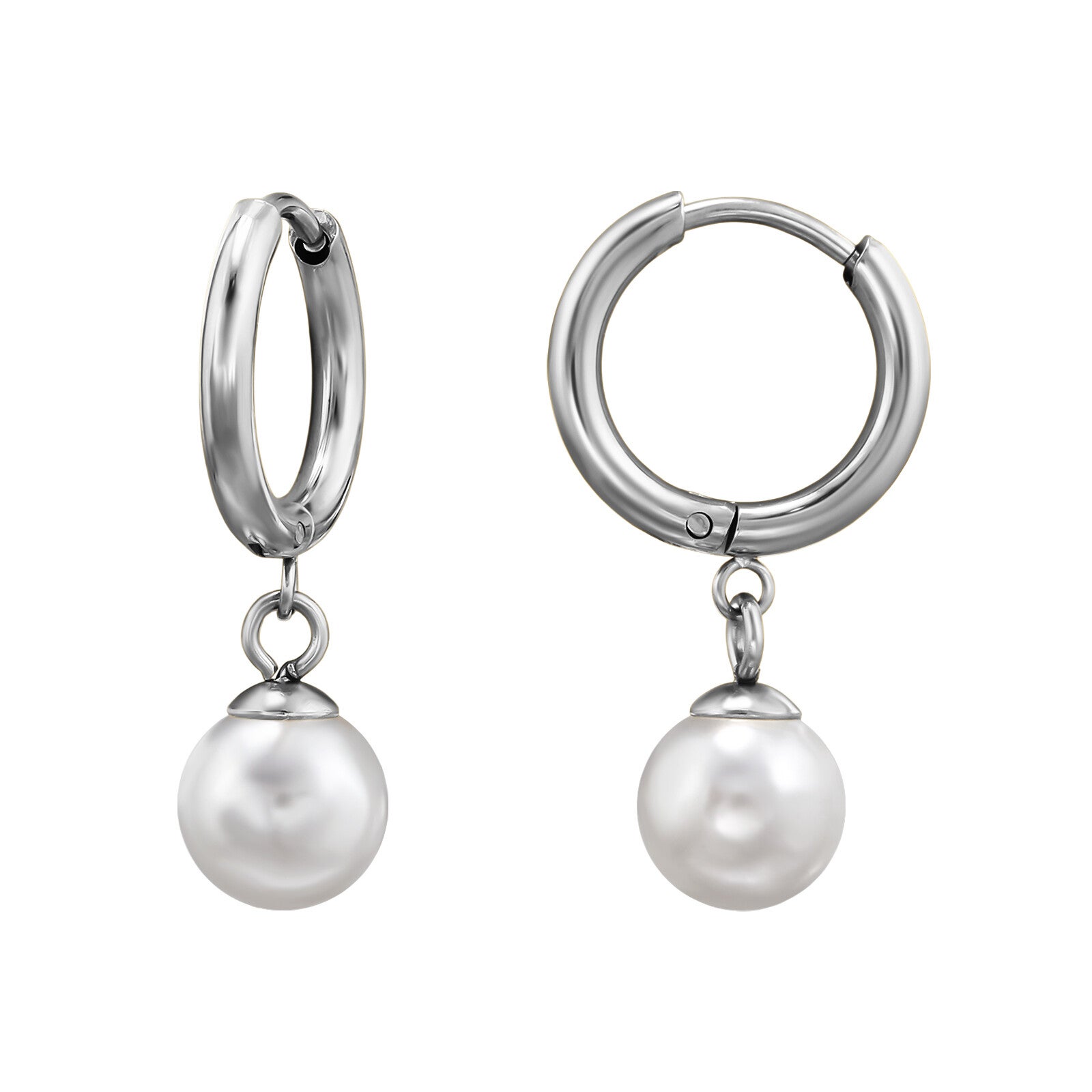 Een uniek exemplaar uit mijn staal- en titaniumcollectie: deze majestueuze 10 mm roestvrijstalen ring met een hangende imitatieparel van 8 mm is gemaakt van chirurgisch roestvrij staal en voorzien van een onberispelijke afwerking.