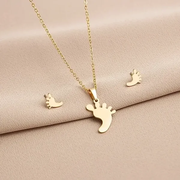 Deze betoverende sieradenset bestaat uit fijne babyvoetjes oorbellen en een bijpassende ketting, vervaardigd uit hoogwaardig roestvrij staal (stainless steel).