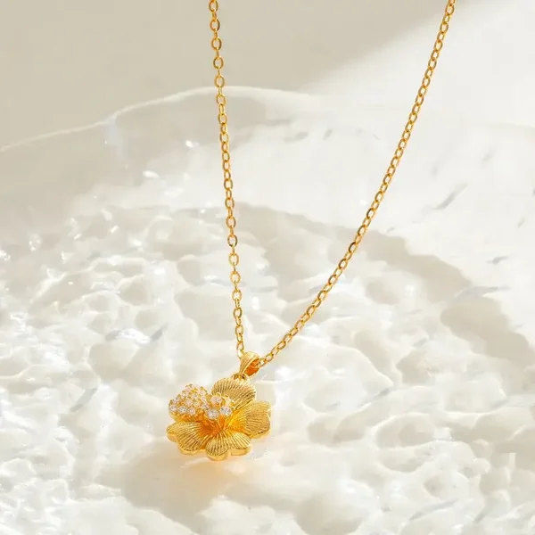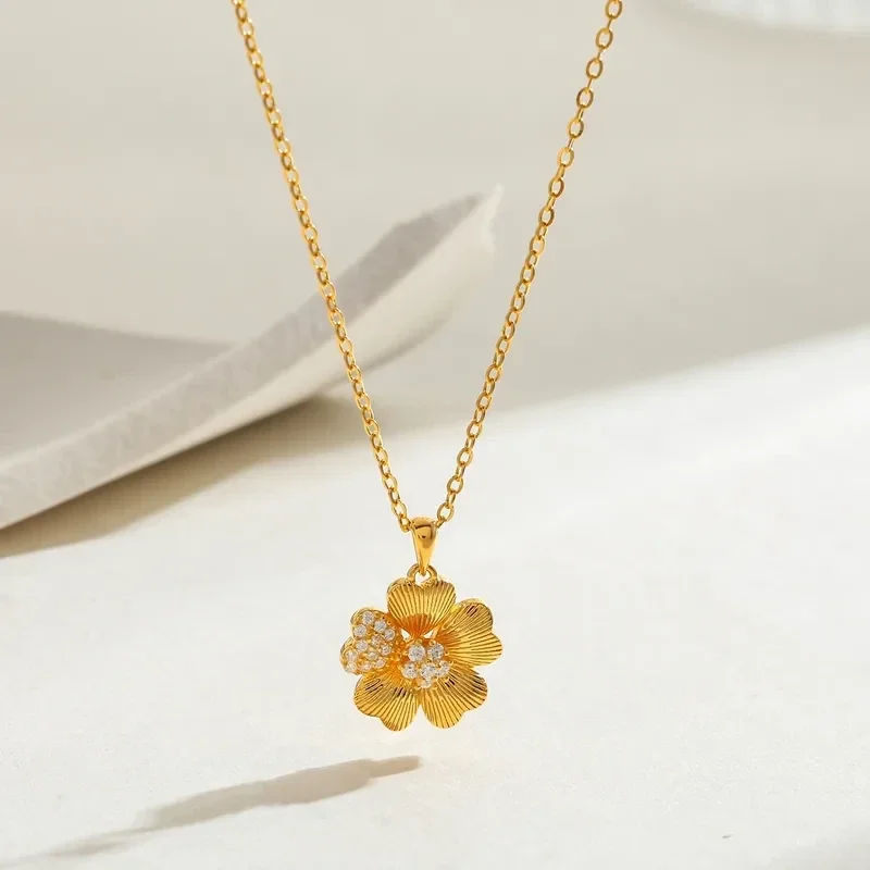 Ketting zilver verguld 22k echt goud bloem Zirkoon Ketting (met Certificaat)