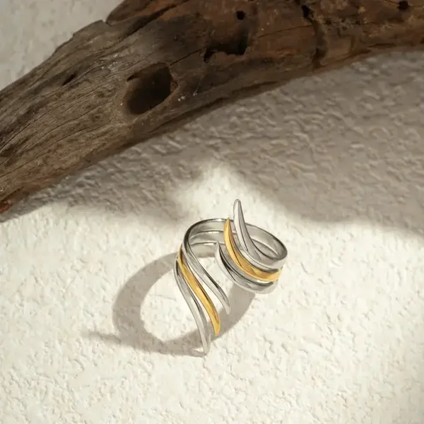 Verstelbare ring van roestvrij staal met een modern geometrisch ontwerp. De strakke en architecturale lijnen bieden een eigentijdse en gedurfde stijl. Glanzende afwerking, goud- of zilverkleurig, voor een chique en minimalistische look. Waterbestendig en hypoallergeen, kan dagelijks worden gedragen, alleen of in duo, voor een uitgesproken grafische touch. Van roestvrij staal, nikkelvrij, cadmiumvrij en loodzoutvrij.