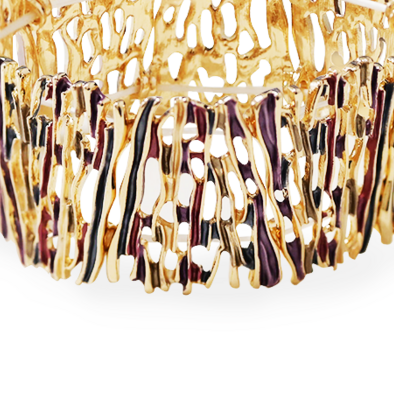 • Organisch, driedimensionaal ontwerp met een onregelmatige textuur die doet denken aan natuurlijke vormen. De gouden afwerking voegt sprankeling en een vleugje verfijning toe.