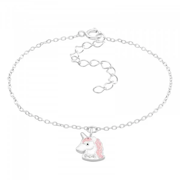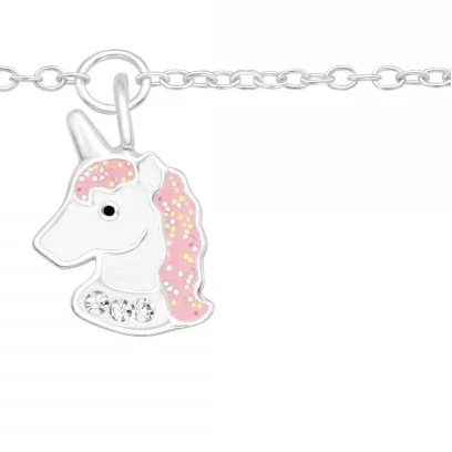 Deze schattige eenhoornarmband met kristal en epoxy uit de zilveren kindersieradenlijn is gemaakt van duurzaam 925 sterling zilver en heeft een elegante verzilverde + E-coat afwerking, waardoor het een ideale aanvulling is op hun sieradencollectie. Dit sieraad heeft een zilvergewicht van 0,95 g en meet 7 mm x 11 mm. De ketting heeft een totale lengte van 18 cm, inclusief verlengstuk van 4 cm, en een dikte van 1 mm.