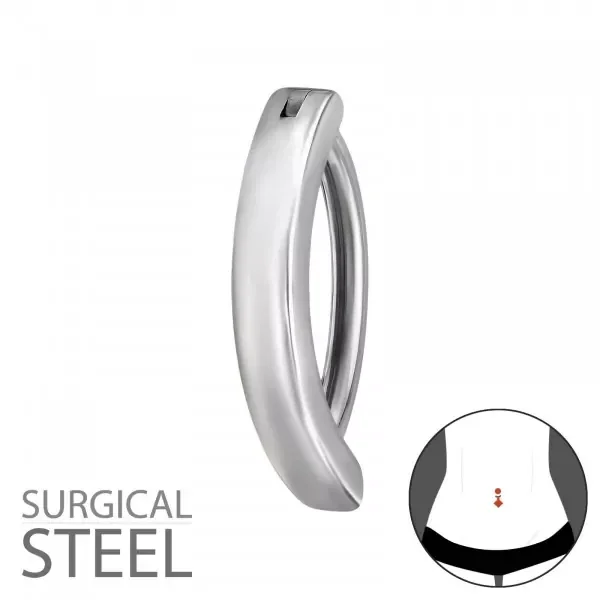 Eenvoudige scharnierende navelpiercing met klikmechanisme, gemaakt van 316 chirurgisch staal, 1,6 x 12 mm (14G) gebogen staal