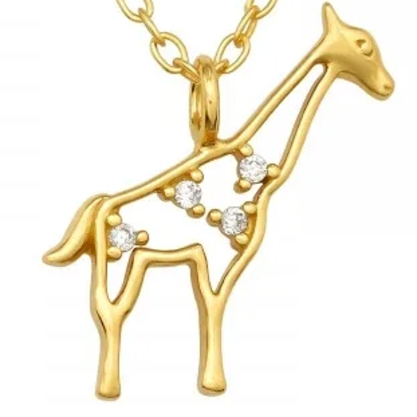 Deze elegante giraffenketting met zirkonia uit de collectie zilveren kettingen is vervaardigd van 925 sterling zilver en heeft een gladde, vergulde afwerking met een E-coating. Het is de perfecte manier om je sieradencollectie een speels accent te geven! Dit sieraad weegt 2,25 gram. Het hangende gedeelte meet 13,2 mm x 13,6 mm. De ketting heeft een totale lengte van 45 cm en een dikte van 1 mm.