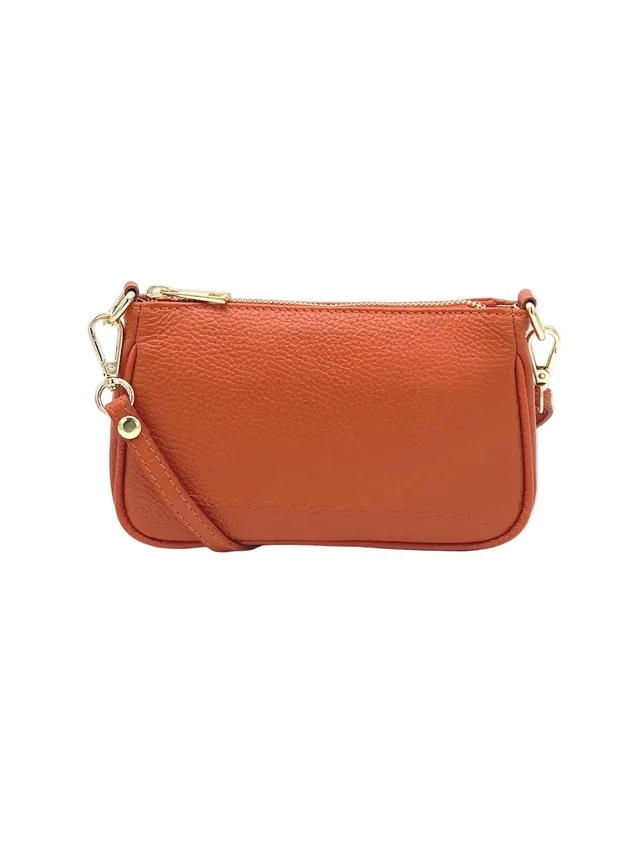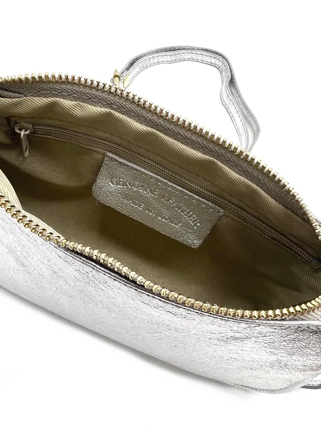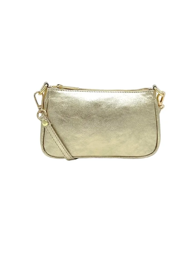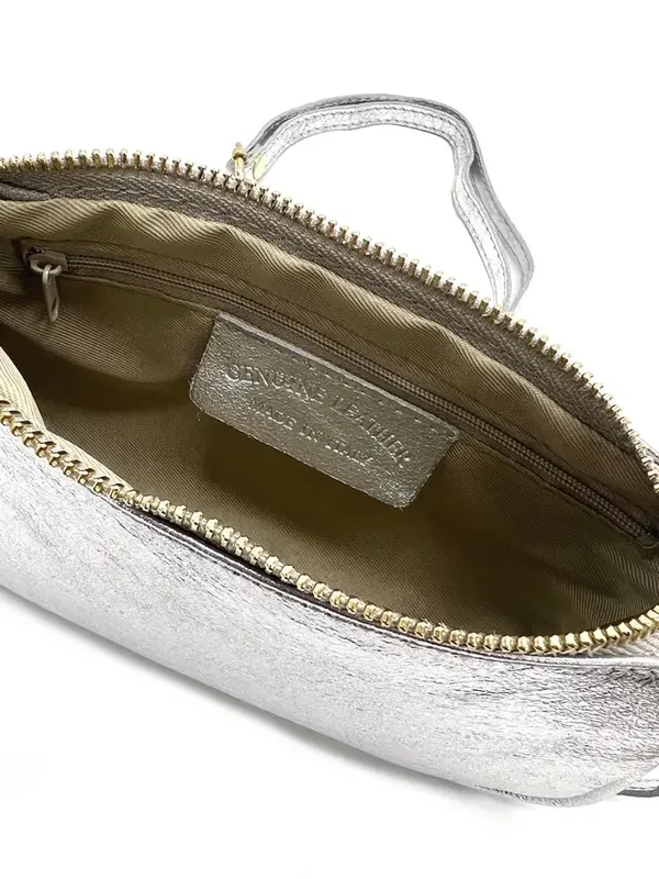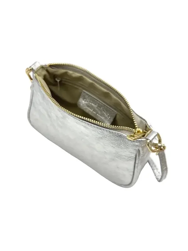 Deze tas is in de kleuren: zilver, goud, oranje en bruin.