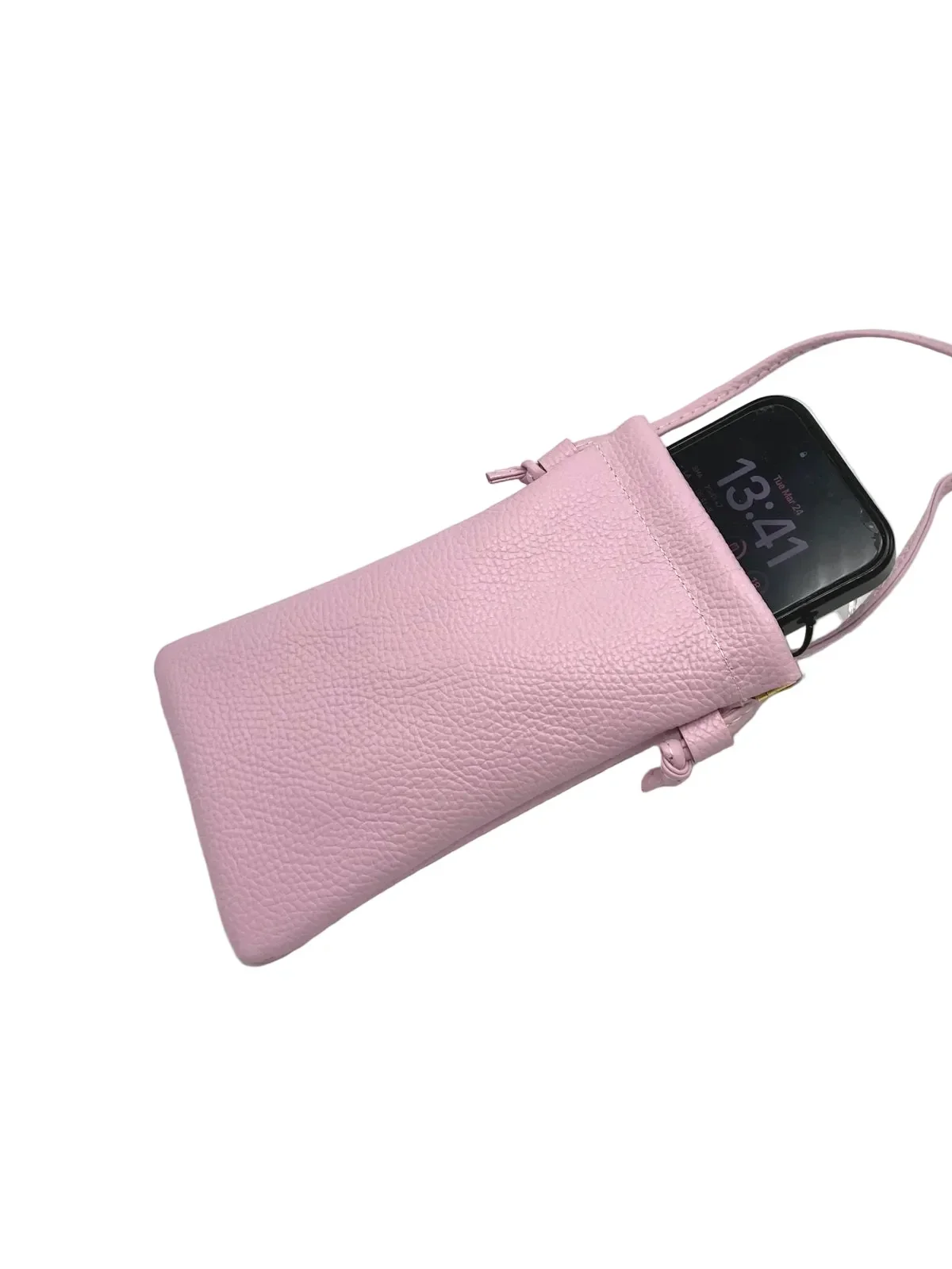 Ontdek ons elegante telefoontasje, gemaakt van echt leer en met zorg vervaardigd in Italië. Dankzij het slanke formaat (20 × 12 × 1 cm) en de verstelbare crossbodyband neem je jouw essentials stijlvol en comfortabel overal mee naartoe.