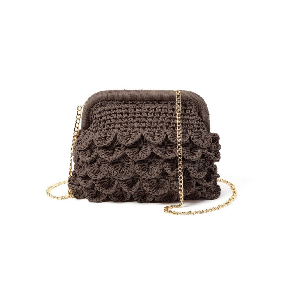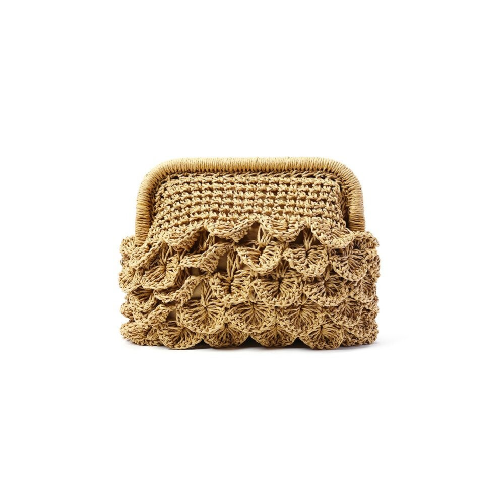 Met haar vierkante vorm en verfijnde strovlechtwerk straalt ze pure zomerse charme uit. De geweven structuur geeft een natuurlijke, luchtige uitstraling die moeiteloos past bij elke strandoutfit, van een zwierige jurk tot een casual short met top.