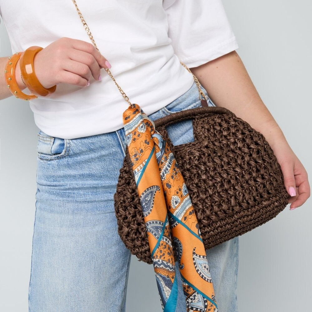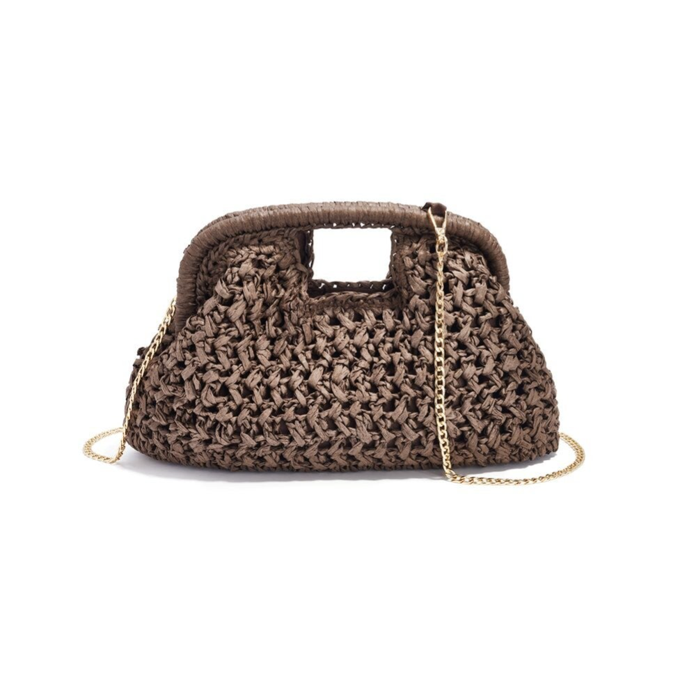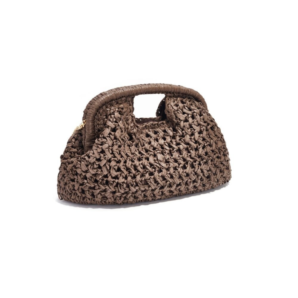 Met haar vierkante vorm en verfijnde strovlechtwerk straalt ze pure zomerse charme uit. De geweven structuur geeft een natuurlijke, luchtige uitstraling die moeiteloos past bij elke strandoutfit, van een zwierige jurk tot een casual short met top.